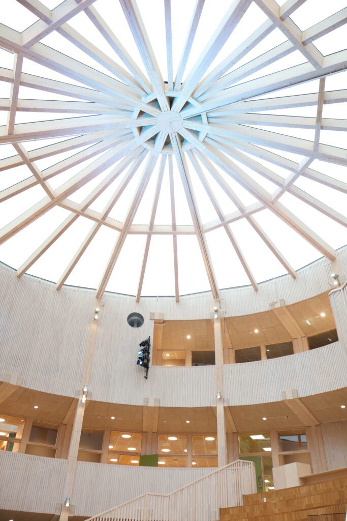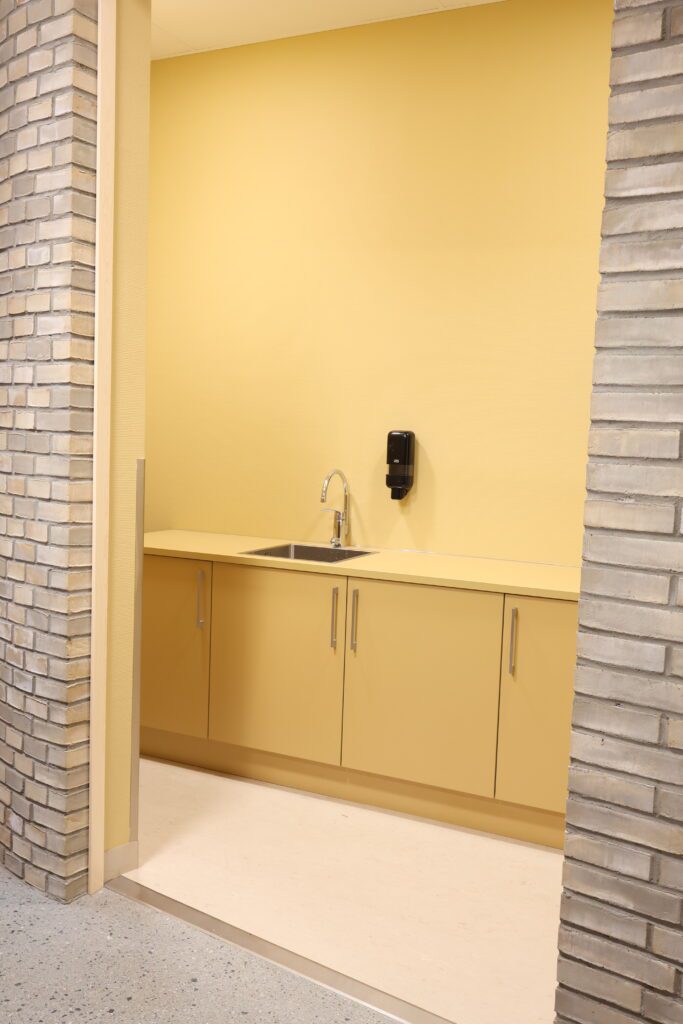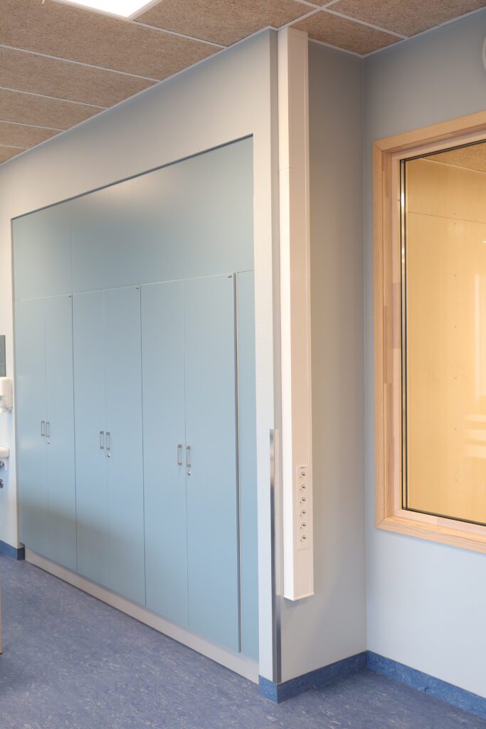 Montasjen har vært en viktig fase i prosjektet. Her har våre dyktige montører spilt en sentral rolle. Med høy presisjon og fleksibilitet har de levert fast inventar, som både fungerer godt i bruk og holder høy kvalitet, også der byggets form har stilt ekstra krav til tilpasning.