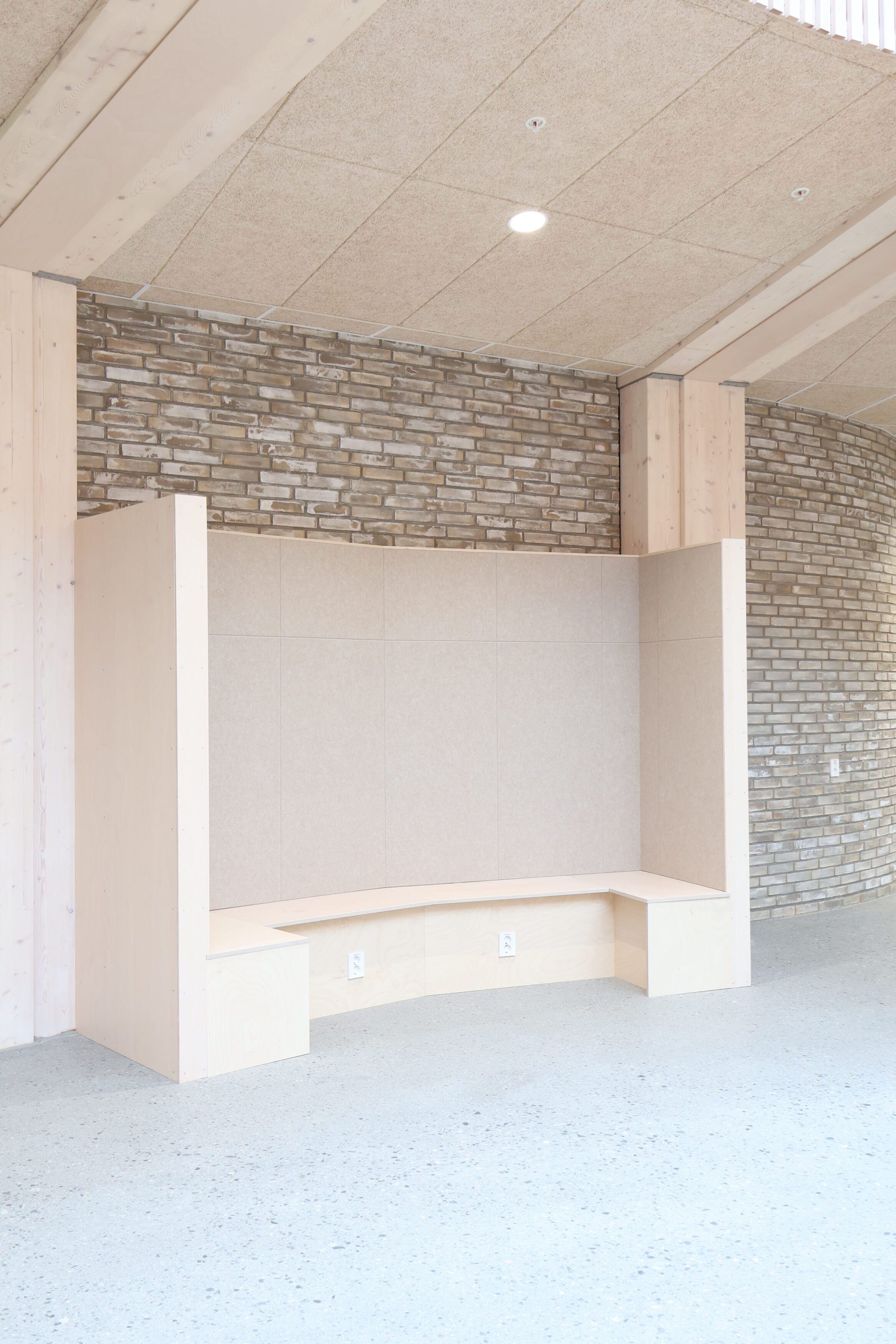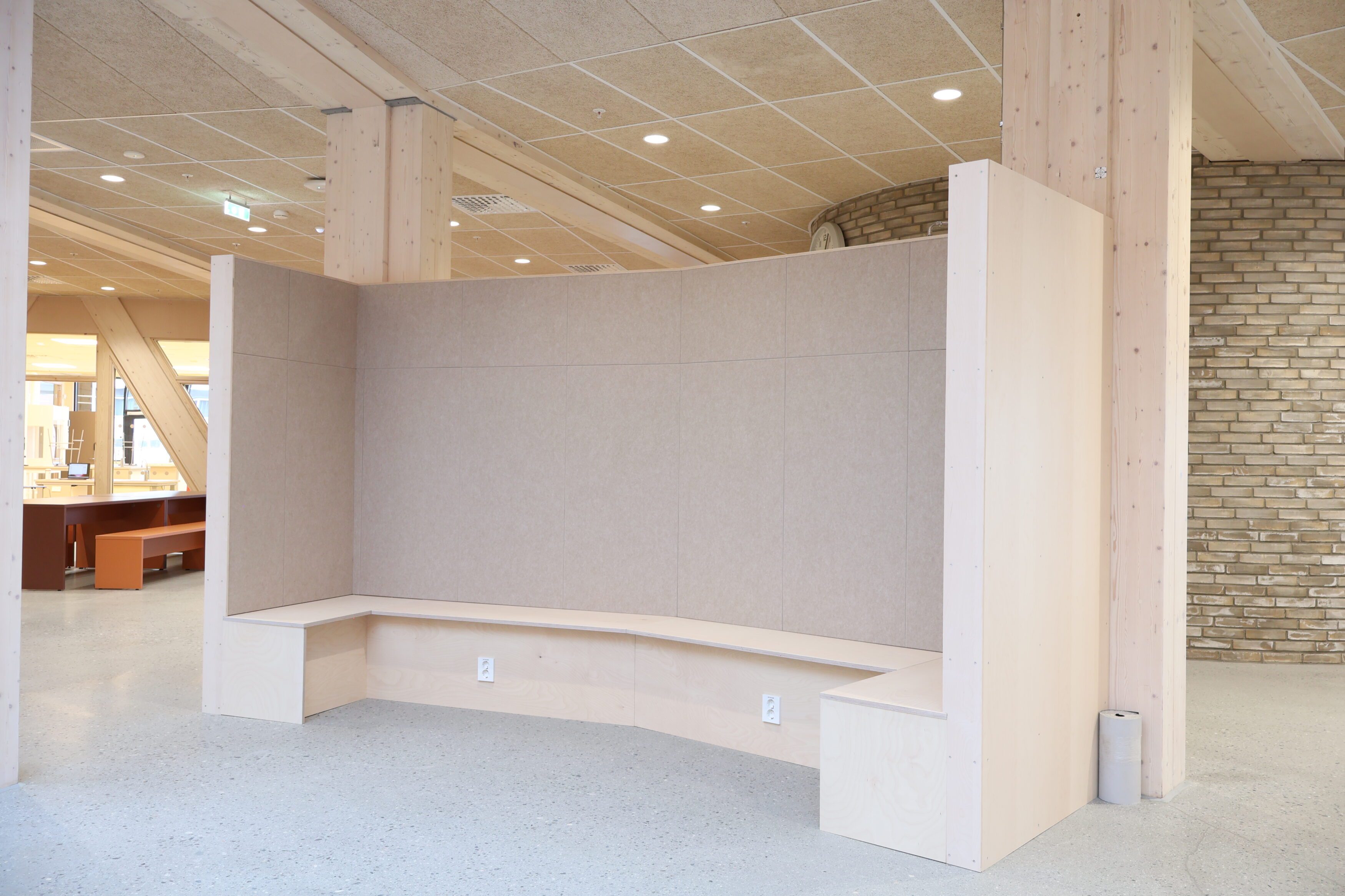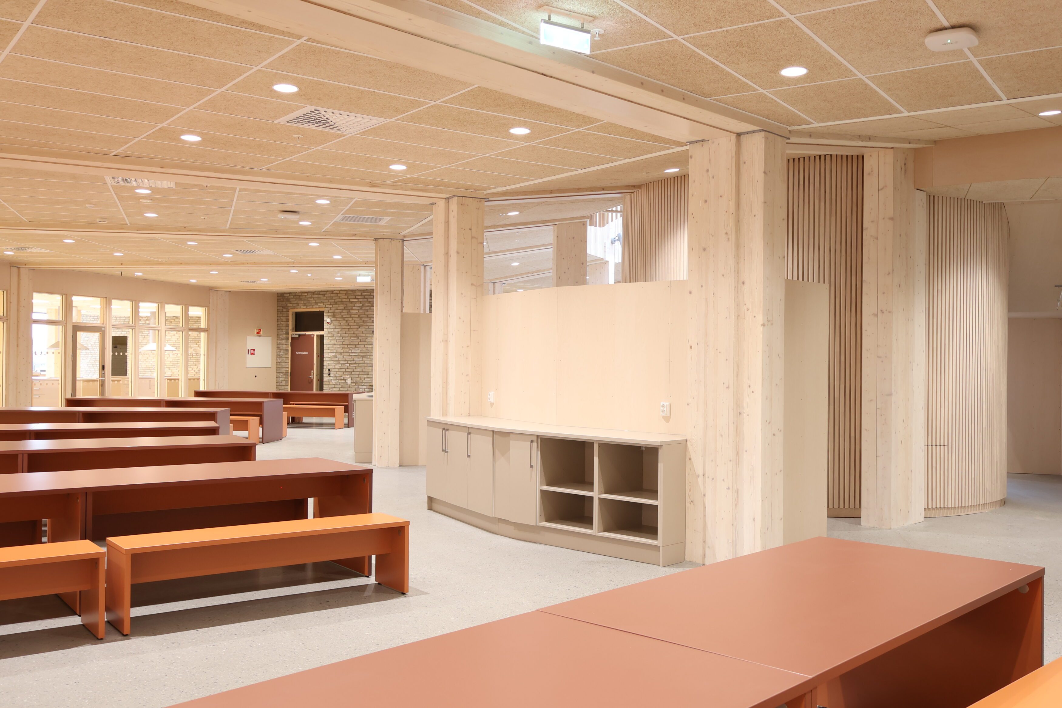 Dette var tydelig definert som en del av prosjektets konsept. Løsningene er basert på arkitektens prosjekterte underlag, og videreutviklet i tett dialog med både totalentreprenør og byggherre. Vår rolle har vært å bidra med erfaring og praktisk forståelse, særlig knyttet til utforming av stedbygde møbler, samt å sikre gode avklaringer mot øvrige fag og en ryddig gjennomføring på byggeplass.