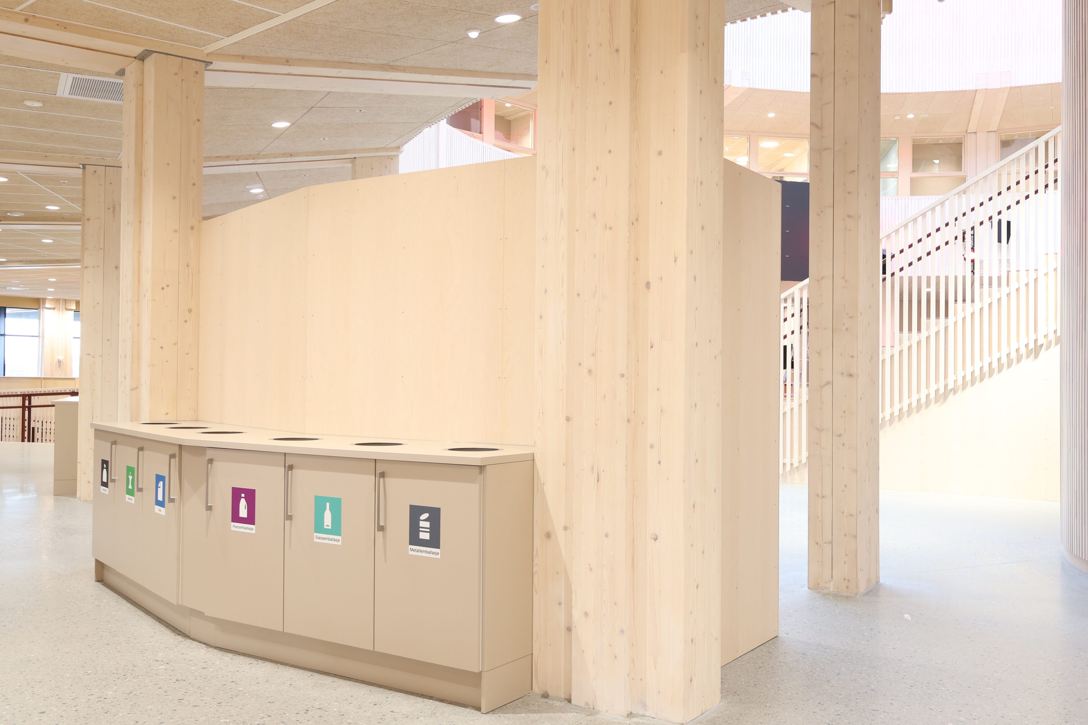 Løsningene er utviklet med fokus på funksjon, slitestyrke og materialvalg tilpasset offentlig bruk, samt god tilpasning til rommenes form og bruksmønster.