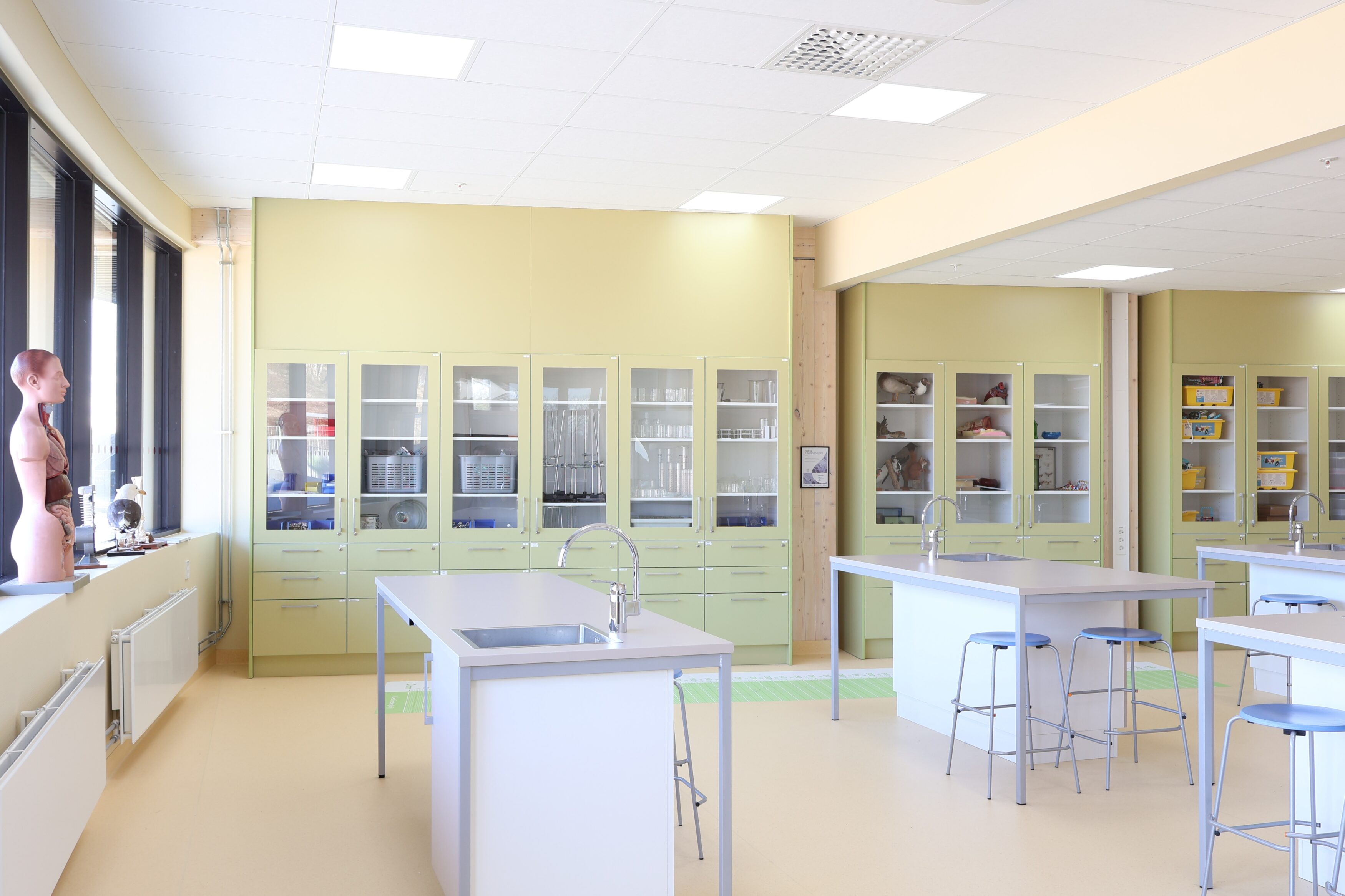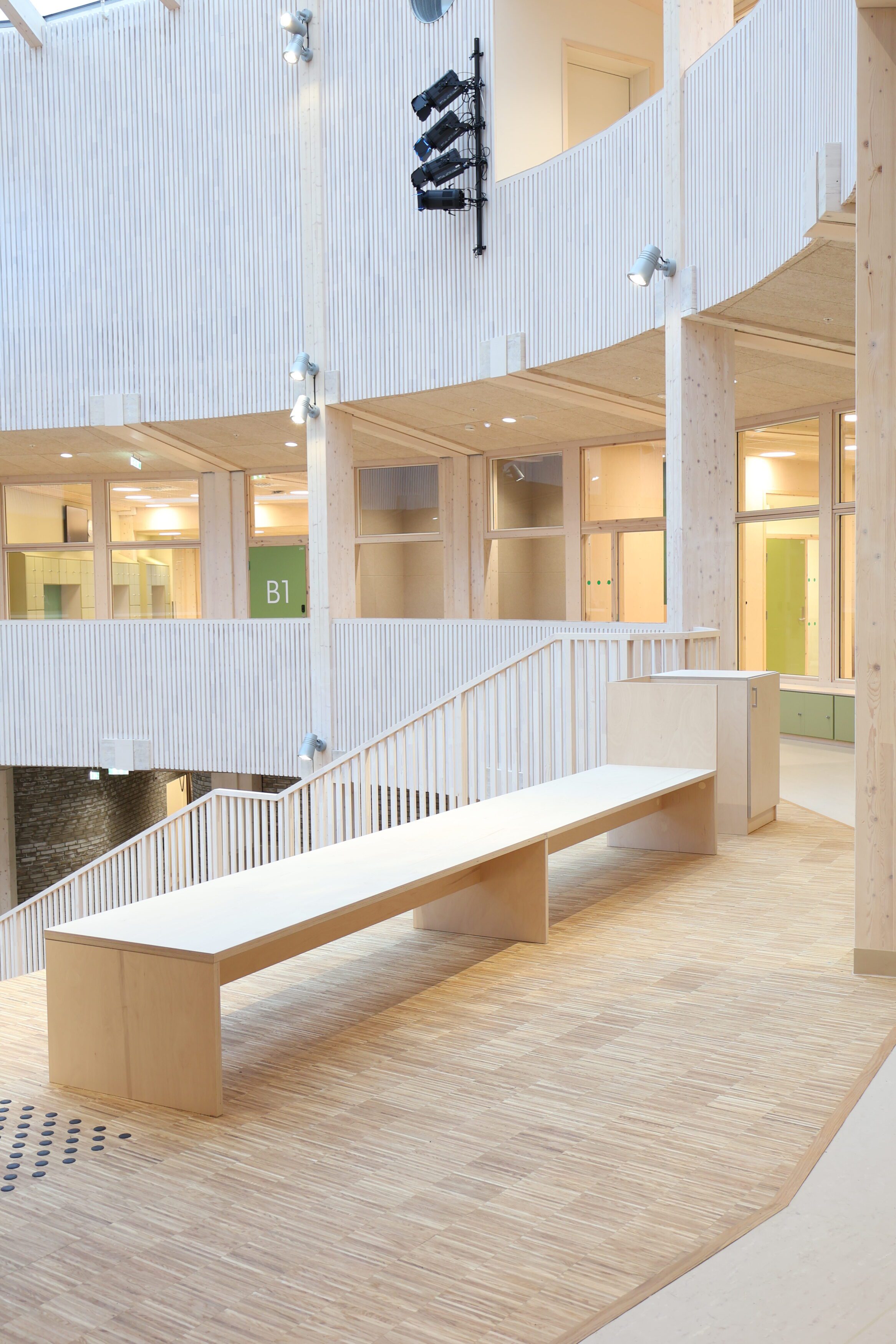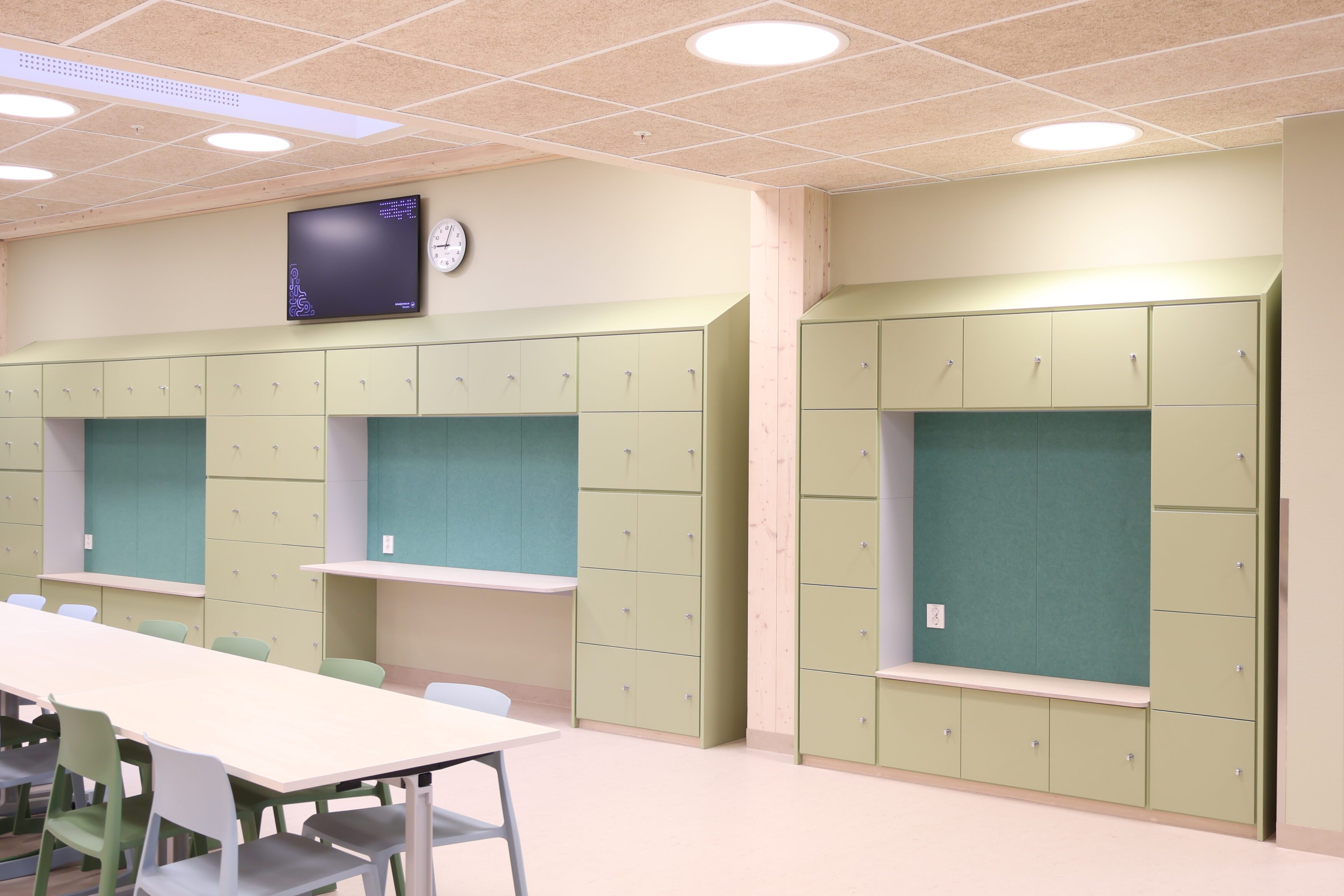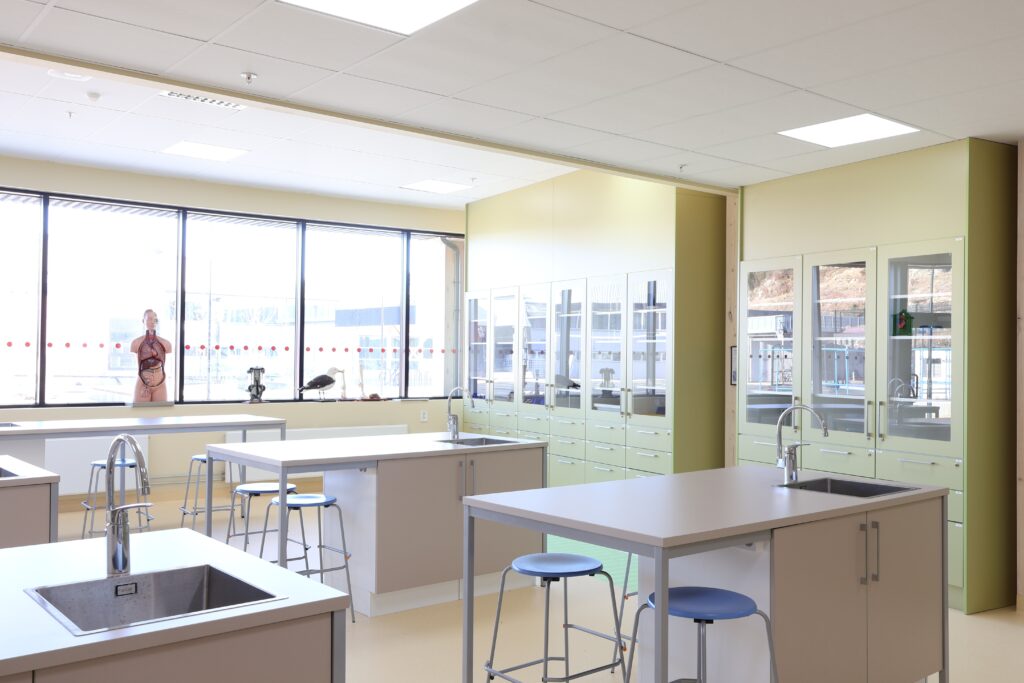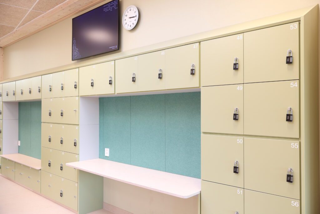 Vår leveranse omfatter blant annet fagrom som skolekjøkken, naturfagrom, skaperrom, multifunksjonsrom, sløyd og kjøkken til forsterket avdeling. I tillegg har vi levert hjemmeområder med bokskap, integrerte sittenisjer og skrivebord, elevgarderober, miljøstasjoner, bibliotekinnredning og en rekke stedbygde sittenisjer, både frittstående og innfelt i vegg.