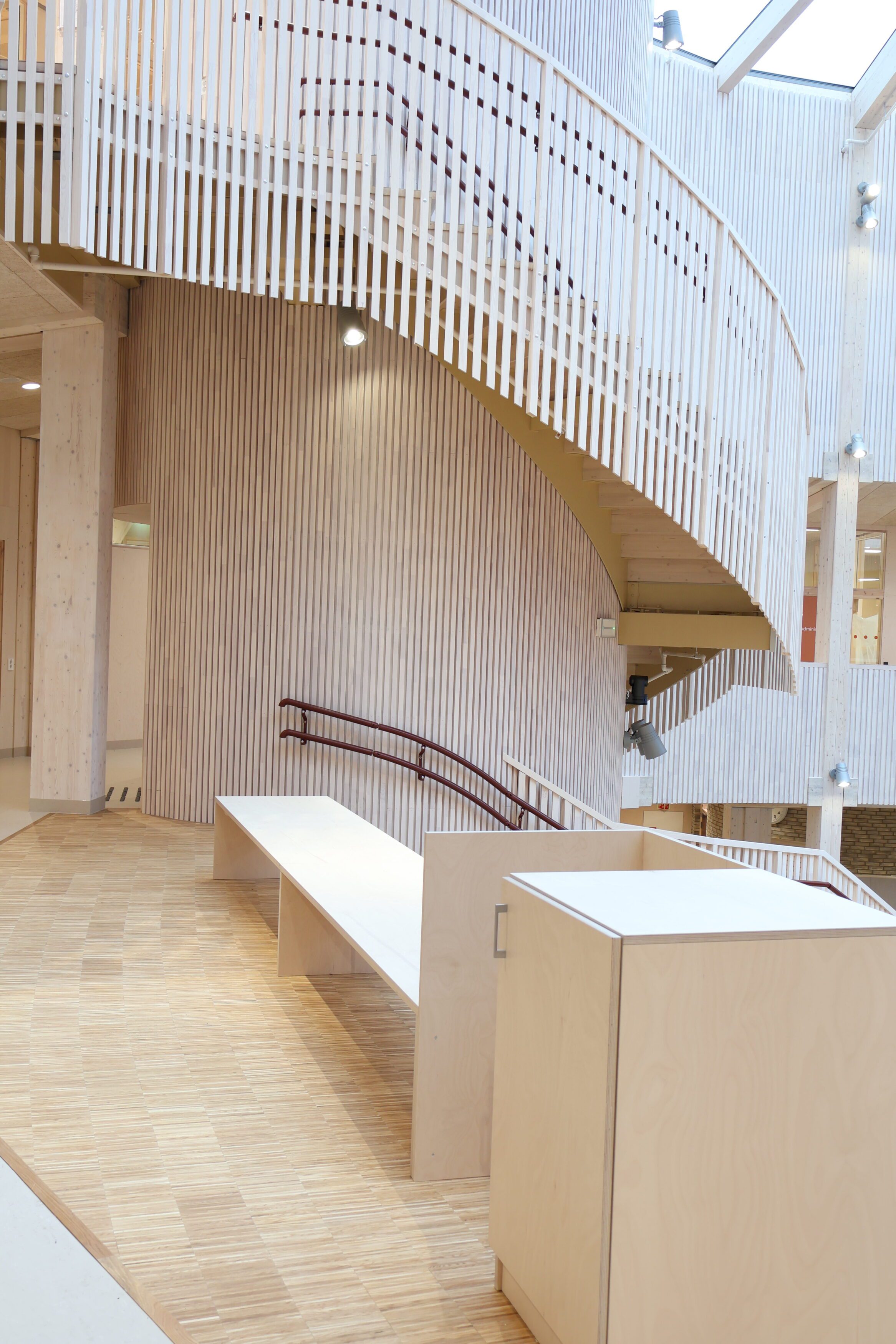 Montasjen har vært en viktig fase i prosjektet. Her har våre dyktige montører spilt en sentral rolle. Med høy presisjon og fleksibilitet har de levert fast inventar, som både fungerer godt i bruk og holder høy kvalitet, også der byggets form har stilt ekstra krav til tilpasning.
