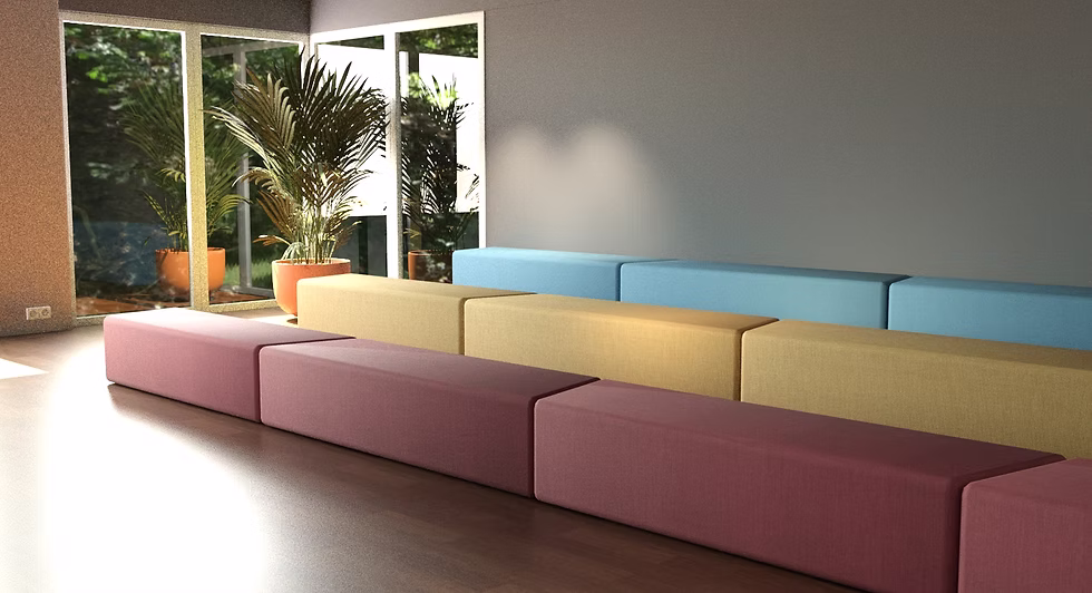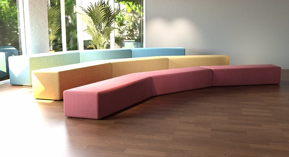 Fargerike og komfortable puffer perfekt for sitteareal – kan vendes og tilpasses som du ønsker! AMFI puffer finnes i 3 høyder og danner en vinkel på 170 grader på når man setter enhetene mot hverandre. Snur du den ene enheten blir det linjen rett.