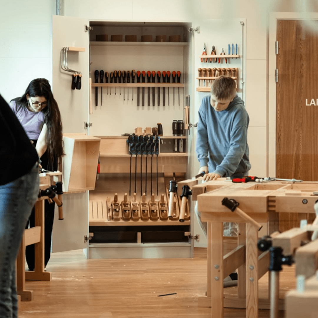 Et robust og funksjonelt verktøyskap utviklet for skoler, verksteder og kreative rom som trenger en trygg og ryddig oppbevaring av verktøy. Kompani Sløyd-skapet kombinerer solid konstruksjon, smart organisering og fleksible løsninger – og kan leveres både tomt eller med komplett verktøypakke.