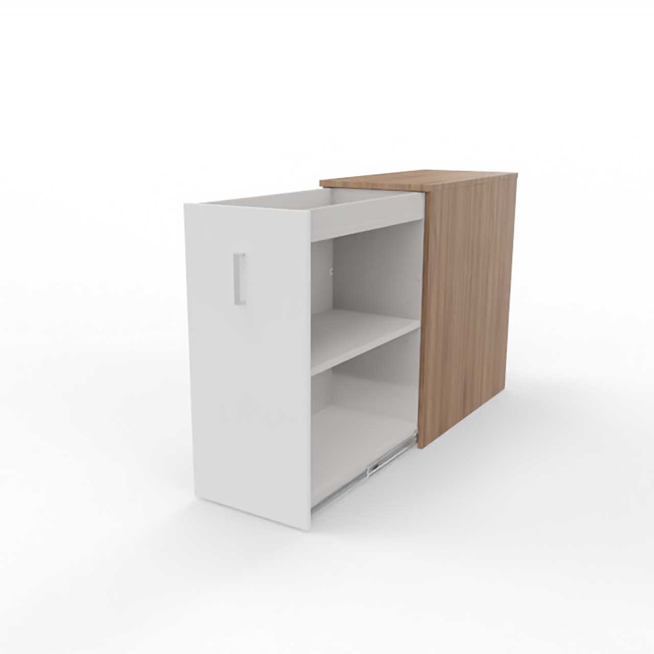 Praktisk og plassbesparende uttrekksskap med to permhyller og 80 cm dybde for optimal lagring. Skapet kan også brukes som romavdeler i åpne landskap, og den smarte uttrekksfunksjonen gjør at du unngår dører som opptar mye plass.