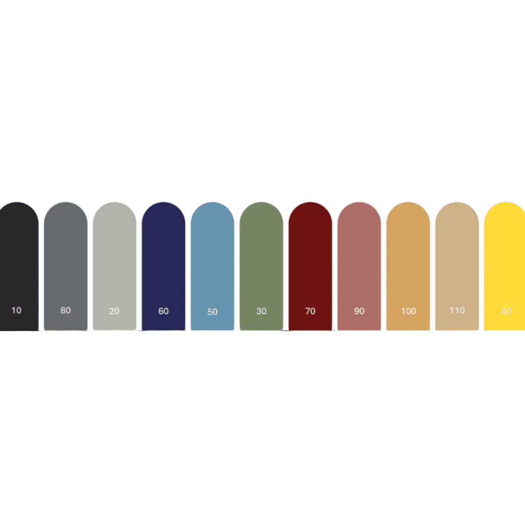 Sort og lys grå Semistd: Mørk blå, mørk rød, gul, lys blå og olivengrønn